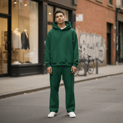 Unser Hoodie & Jogger Set wird sorgfältig aus einer hochwertigen Mischung aus schwerer, dichter Baumwolle (330-400 g/m²) gefertigt, die oft mit strapazierfähigem Polyester für verbesserte Leistung kombiniert wird.