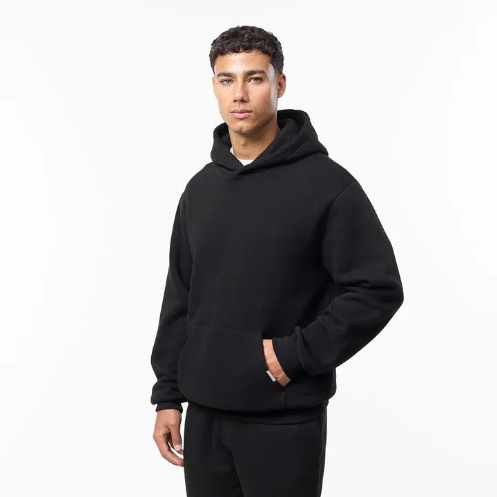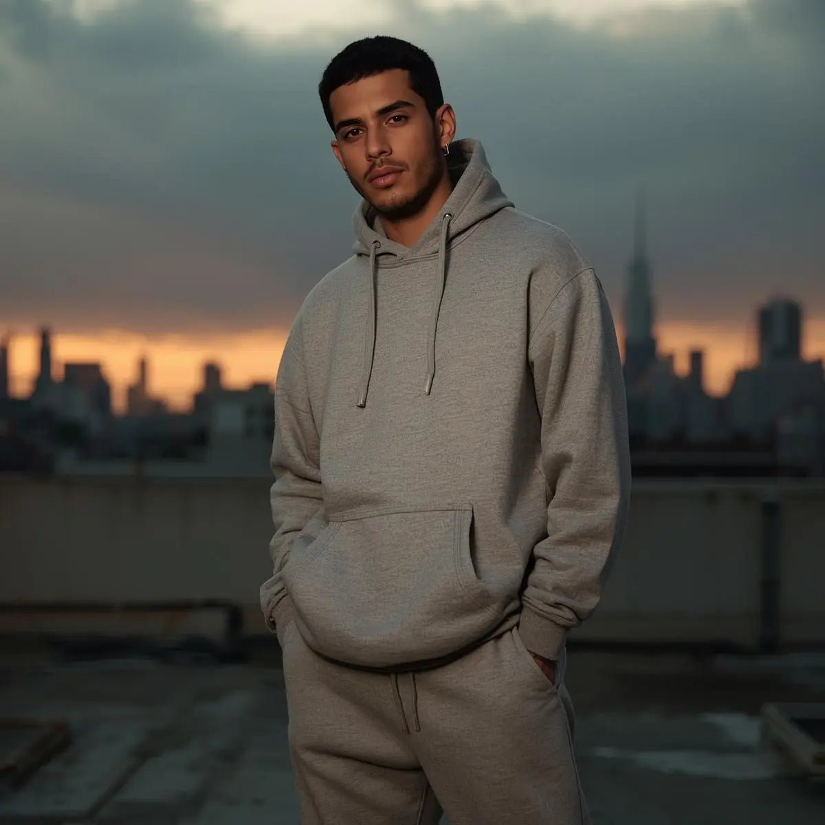 Unser Hoodie & Jogger Set wird sorgfältig aus einer hochwertigen Mischung aus schwerer, dichter Baumwolle (330-400 g/m²) gefertigt, die oft mit strapazierfähigem Polyester für verbesserte Leistung kombiniert wird.